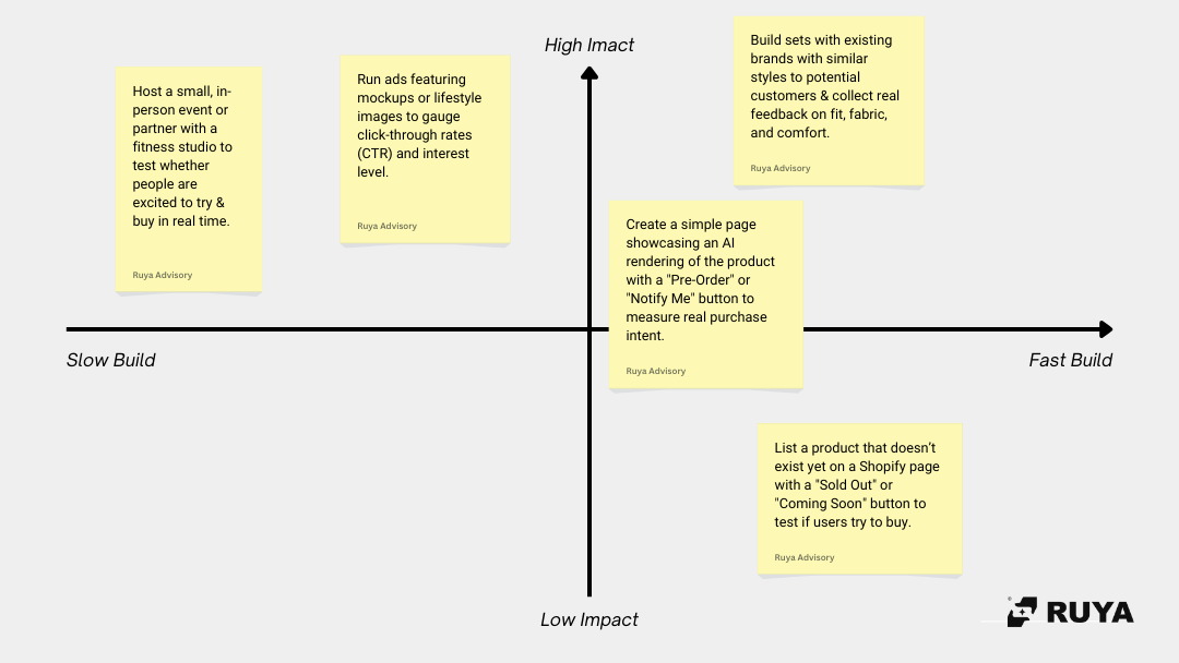 Instead, we’re going to generate as many ways as possible to test this idea without writing code, manufacturing products, or committing to a direction too early.